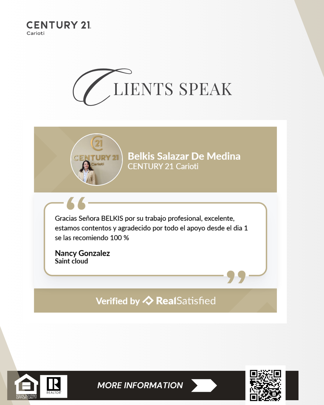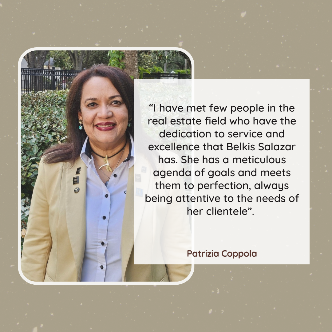 “I have met few people in the real estate field who have the dedication to service and excellence that Belkis Salazar has. She has a meticulous agenda of goals and meets them to perfection, always being attentive to the needs of her clientele”.