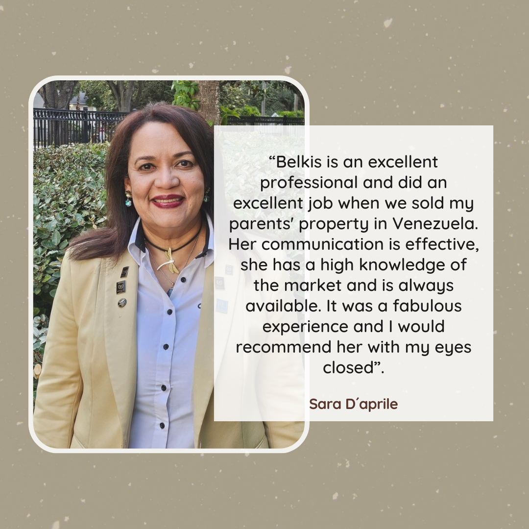 “Belkis is an excellent professional and did an excellent job when we sold my parents' property in Venezuela. Her communication is effective, she has a high knowledge of the market and is always available. It was a fabulous experience and I would recommend her with my eyes closed”.